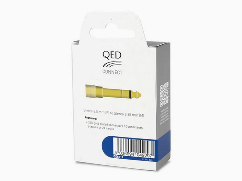 Адаптер QED CONNECT JACK 6.35-3.5MM преобразует разъем для наушников 3,5 мм в разъем 6,35 мм, чтобы вы могли подключить наушники к устройству, имеющему только больший выход 6,35 мм например усилителю, ЦАП или усилителю для наушников.
