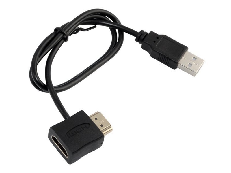 При использовании современных HDMI AOC кабелей совместно со старыми телевизорами, ноутбуками или видеокартами иногда возникает проблема из-за недостаточного уровня напряжения в HDMI гнездах этих устройств. Для достижения необходимого напряжения в гнезде HDMI со стороны источника предназначен дополнительный USB кабель питания. Кабель подключается в свободный USB порт, второй разъем подключается в выходной HDMI разъем и уже в него, с обратной стороны (мама) подключается HDMI AOC кабель. Длина кабеля: 0,5 метра.