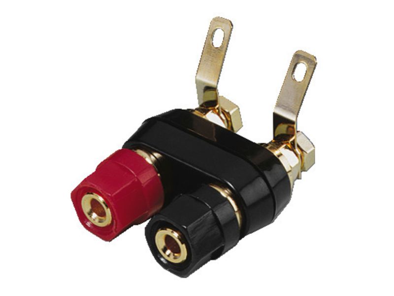 Акустические терминалы Monacor ST-922G (Германия) с позолоченным покрытием контактов и пластиковым корпусом красного/черного цвета. Крепление проводника осуществляется посредством винтового зажима, для подсоединения к терминалам можно использовать как оголенный кабель, так и разъемы типа "лопатка" или "банан" диаметром до 4,0 мм.