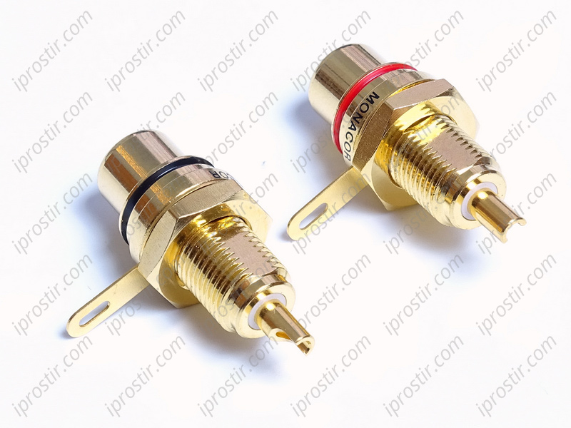 Аппаратные гнезда RCA с позолоченным покрытием. Диаметр: 8,0 мм