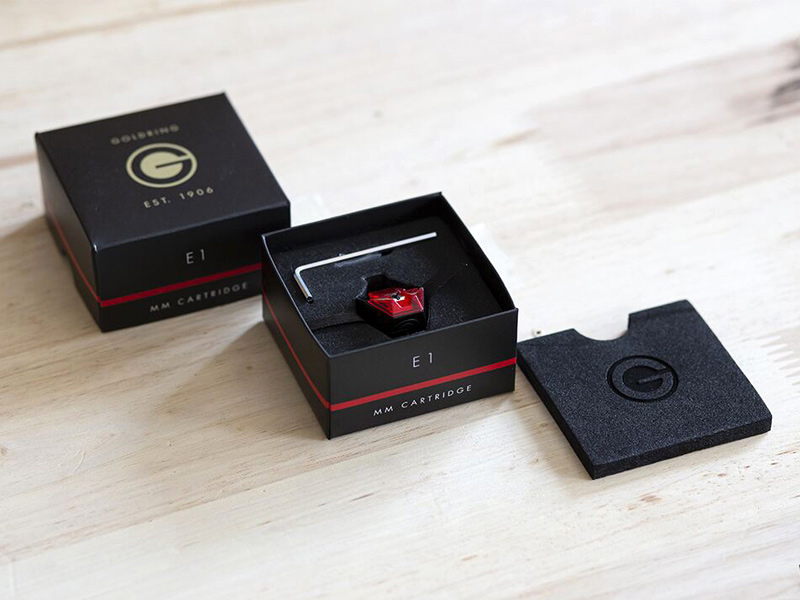 Картридж GOLDRING E1, перший у серії E, використовує армований вуглецевим волокном кантилевер і склеєний сферичний (0,6 мил) стилус із круглим хвостовиком. Вуглець є ефективною альтернативою більш високоякісним алюмінієвим або борним матеріалам, що забезпечує схожі результати в Hi-Fi обладнанні початкового рівня.