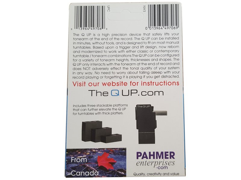 В комплект поставки входит автоматический независимый лифт-подъемник для тонарма Tonar Q-UP Automatic Arm Lifter, art. 5944 и три базы-вставки для монтажа подъемника разных размеров: 10 мм, 20 мм и 30 мм. При установке нужно учесть, что минимальная высота между столом проигрывателя и нижней части тонарма при воспроизведении грампластинки должна составлять не менее 36 мм. Тонармы Pro-Ject Debut Series могут использовать Tonar Q-UP Automatic Arm Lifter без добавочной базы-вставки. Просто используйте двухстороннюю клейкую ленту для фиксации Tonar Q-UP Automatic Arm Lifter, art. 5944