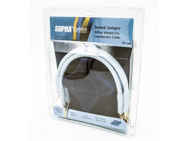 Перемички SUPRA SWORD JUMPER для Bi-Wire акустичної системи постачаються з фірмовими конекторами CombiCon типу "лопатка" із цільної позолоченої міді. Лопатки та провід обтискаються разом під високим тиском, створюючи ідеальне, герметичне з'єднання.
