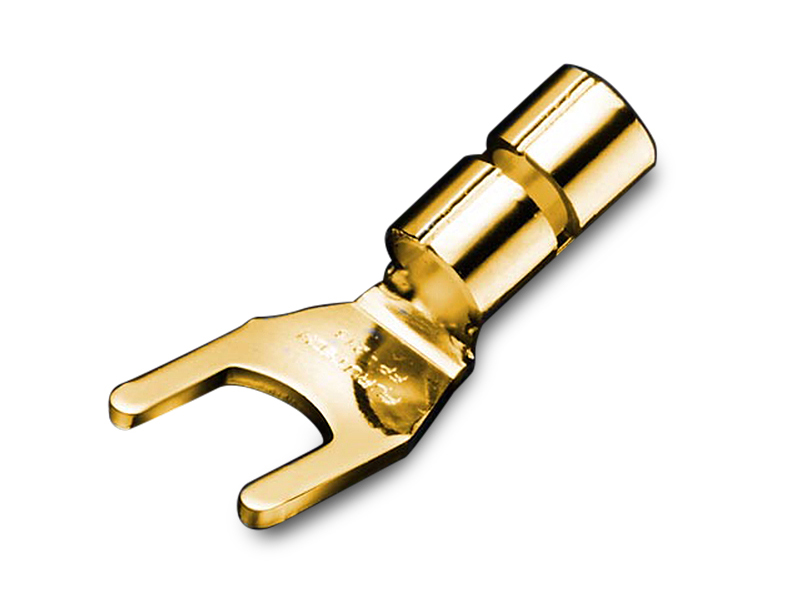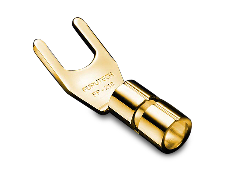 Акустические лопатки Furutech FP-218 Gold с контактами из чистой меди, покрытыми 24К позолотой. Для стабилизации электрических и механических параметров коннекторы подвергаются криогенной обработке и размагничиванию (Alpha-технология). Конструкция разъёма включает специальную двухсекционную зажимную часть, обеспечивающую максимально плотный контакт и высокое качество передачи сигнала. Внутренняя часть зажима предназначена для фиксации не изолированного проводника, тогда как внешняя — для зажима кабеля с диэлектриком.