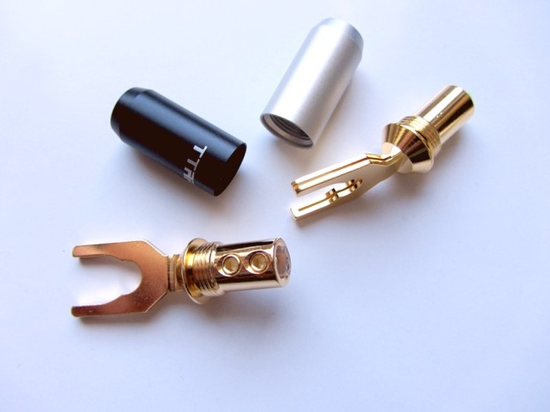 Акустические лопатки с термокомпенсацией TTAF 93189/93190 имеют контакты из позолоченной латуни и винтовое крепление проводника. Корпус разъемов выполнен из матированного алюминия, имеет серебристую/черную маркировку для идентификации каналов.