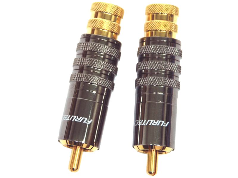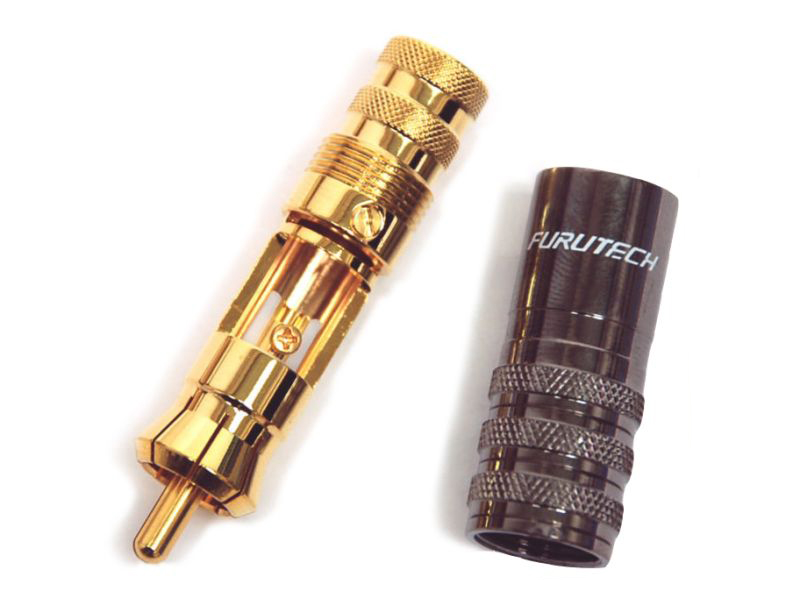 Разъемы RCA Furutech FP-104 Gold с цанговым зажимом, корпусом из латуни и тефлоновой изоляцией. Центральный контакт разъема выполнен из эвтектического латунного сплава, обработанного по альфа-криогенной технологии и покрытого 24К золотом. Крепление проводника осуществляется посредством пайки.