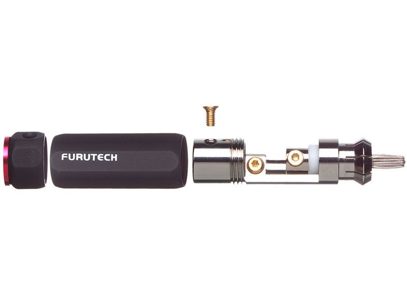 Разъемы RCA Furutech FP-106 Rhodium с нитевидным центральным контактом из фосфорной бронзы, обработанной по альфа-криогенной технологии и покрытой родием. Корпус коннекторов выполнен из медного сплава, в качестве материала изоляции применяется тефлон. Проводник в разъеме фиксируется при помощи винтов. Цанговый зажим обеспечивает надёжную фиксацию разъёма в аппаратном гнезде.