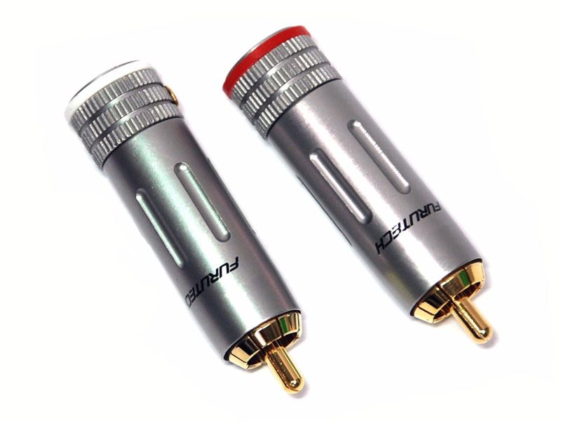 Разъемы RCA Furutech FP-104 Gold с цанговым зажимом, корпусом из латуни и тефлоновой изоляцией. Цент..