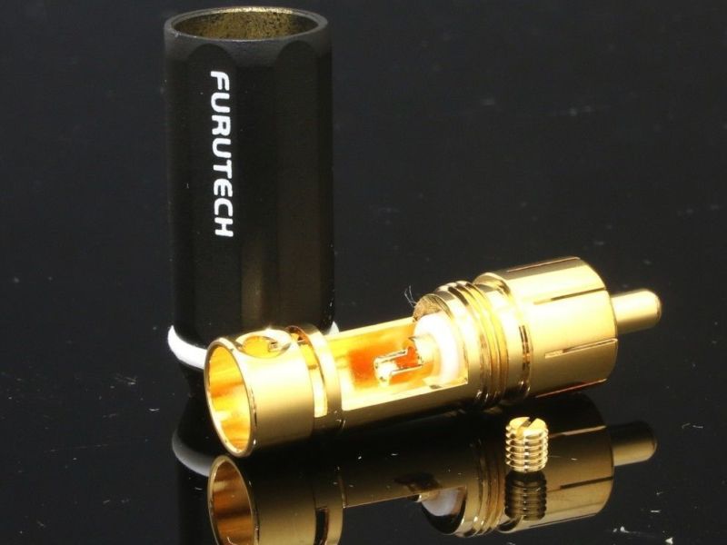 Разъемы RCA Furutech FP-126 Gold с корпусом из медного сплава, тефлоновой изоляцией и цветной маркировкой для удобной идентификации каналов. Центральный контакт разъема выполнен из монокристаллической меди PCOCC, обработанной по альфа-криогенной технологии и покрытой 24К золотом. Крепление проводника осуществляется посредством пайки.