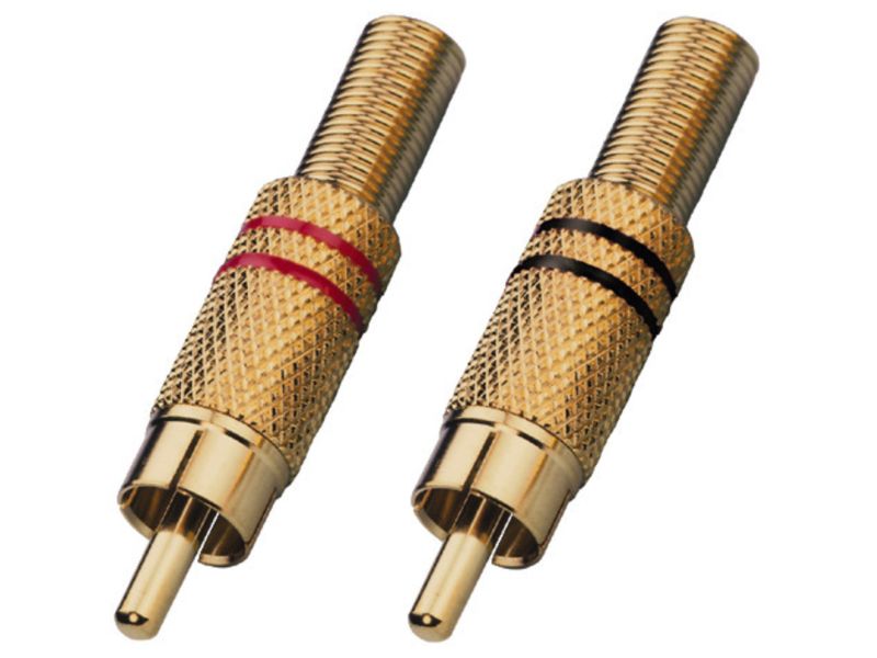 Разъемы RCA Monacor T-708GLC, выполненные из латуни с позолоченным покрытием контактов. Красная и черная маркировка на корпусе служит для удобной идентификации каналов. Для предотвращения излома кабеля на конце разъема имеется предохранительная пружина.
