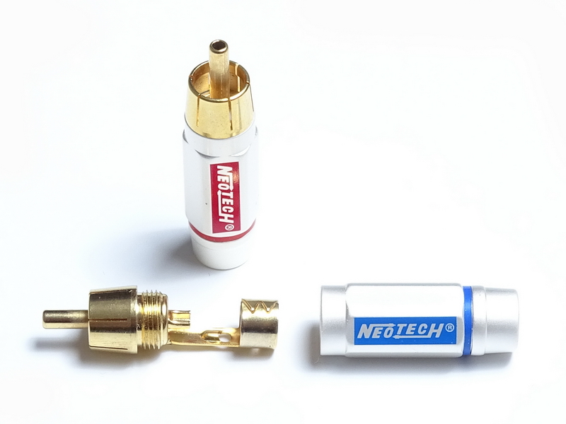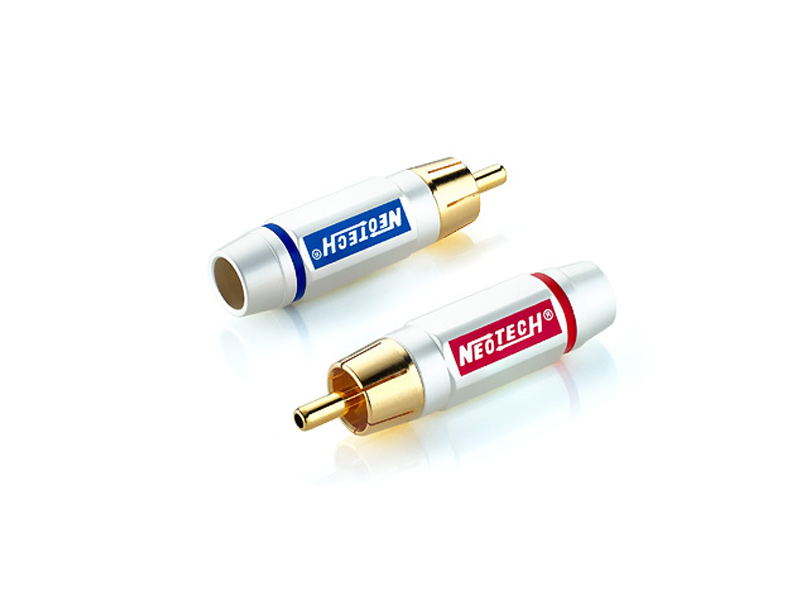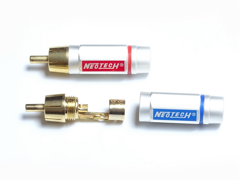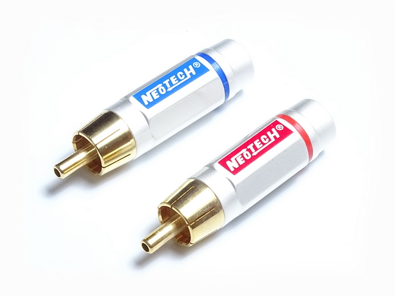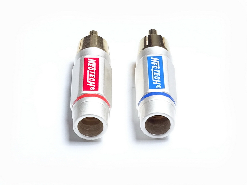Коннекторы RCA Neotech DG-203 II Cryo изготовлены из бескислородной меди OFC с 24К позолоченным покрытием и криогенно обработанными контактами. Имеют красную/синюю маркировку для удобства идентификации каналов. Длина разъема — 47,0 мм.