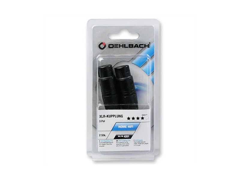 3-контактные разъёмы Oehlbach XLR FM female с 24К позолоченными контактами и автоматическим фиксатором, обеспечивающим удобное и надёжное крепление кабеля в разъёме.