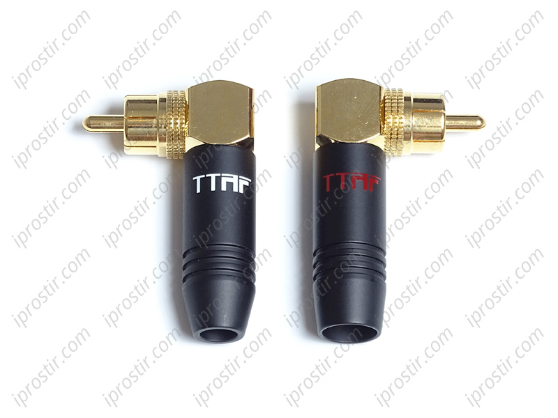 Большим преимуществом угловых RCA разъемов TTAF 93213/93214 является фиксация обоих проводников при помощи пайки (причем пайка массы выведена на лепесток без необходимости прогрева всего тела разъема либо возможен классический обжим экрана при коаксиальной конструкции кабеля). Псевдоцанговая конструкция разъема и пропил в центральном пине обеспечивают плотную посадку в аппаратных гнездах.