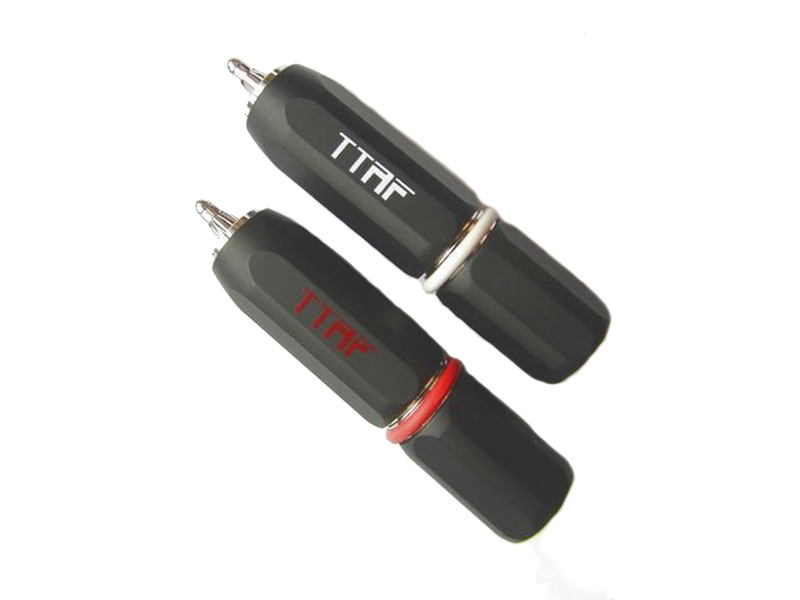 Разъемы RCA TTAF 93271/93272 с контактной группой из посеребренной меди, в качестве изоляции проводников используется тефлон. Для удобной идентификации каналов на матированном латунном корпусе нанесена маркировка красного и голубого цвета. Цанговый зажим обеспечивает надежную фиксацию разъема.