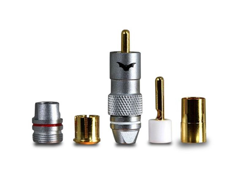 Разъемы RCA C7X американского производителя Vampire Wire с позолоченными контактами и уплотнительной вставкой для защиты от радиочастотных наводок и уменьшения нагрузки натяжения кабеля. Имеет красную и белую маркировку на корпусе для удобной идентификации каналов. Крепление проводника осуществляется посредством пайки.
