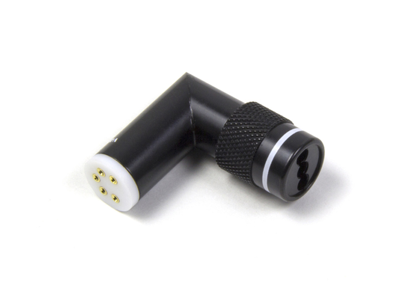Угловой 5-контактный разъём DIN female, разработанный компанией Van den Hul (Нидерланды) для коммутации фонокабелей D-501 Hybrid, D-501 Silver Hybrid и D-502 Hybrid. Контакты разъёма имеют трехслойное покрытие: медью, серебром и 24К золотом, внутренняя изоляция выполнена из тефлона.