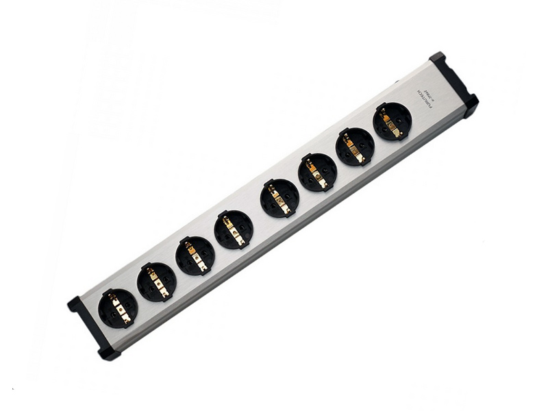 Furutech e-TP86E (G) — это высококлассный распределитель питания на восемь розеток евростандарта Schuko FI-E30 (G) 16A, изготовленных с применением фирменного двухэтапного технологического процесса Alpha, включающего криогенное замораживание и размагничивание. Также в фильтре-дистрибьюторе использована технология GC-303 для предотвращения электромагнитных и радиочастотных помех. Его элегантный алюминиевый корпус служит защитой от радиочастотных помех. Внутренняя разводка выполнена высококачественным кабелем Furutech μ-14 сечением 2мм² (14AWG) обеспечивают очень низкое сопротивление и отличную электропроводность. Все разъёмы удлинителя e-TP86E (G) оснащены позолоченными контактами из медного сплава.