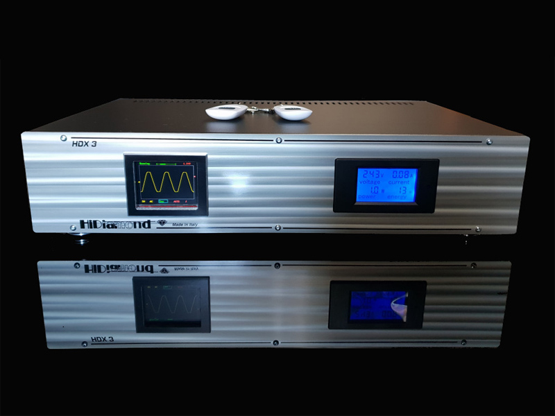 Новый сетевой фильтр HDX3 производства итальянской компании HiDiamond оснащён семью высококачественными входными розетками европейского стандарта. На передней панели фильтра-дистрибьютора имеется информационный LCD-дисплей с наглядной индикацией текущего режима работы, а также осциллограф, отображающий параметры сети и синусоиду выдаваемого напряжения. Кнопка предохранителя на 10А защищает подключаемую электронику от молнии, перегрузки и т.п. Для обеспечения максимально чистого питания в аппарате используется более мощный фильтр, чем в младшей модели, проводники выполнены из фирменной 4VRC© меди (4 Vote Rame Cotto — четырежды пропечённая медь).