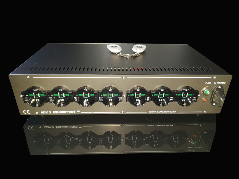 Сетевой фильтр-дистрибьютор HiDiamond HDX3 — усовершенствованная версия модели HDX2, предназначенная для контроля и выравнивания переменного тока и напряжения для стабильной работы аудио-видео оборудования, в частности мощных Hi-Fi и Hi-End компонентов.