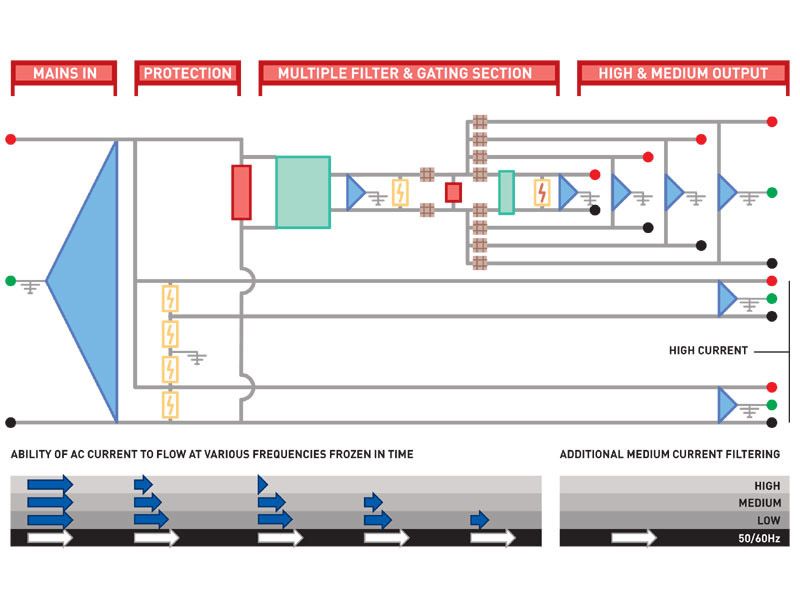 Сетевой фильтр Vision GII разработан британской компанией IsoTek для эффективного подавления помех в электрической сети и улучшения звука аудиокомпонентов Hi-Fi и Hi-End систем. Устройство оборудовано шестью розетками евростандарта, две из которых предназначены для мощных устройств, а остальные четыре — для источников. Выходные розетки 5 и 6 снабжены добавочными фильтрами, что обеспечивает улучшение работы видеооборудования. Каждая из розеток имеет индивидуальные фильтры, предотвращающие взаимное влияние компонентов друг на друга. Они основаны на сложной схеме Дельта-фильтрации, предотвращающей возникновение радиочастотных помех и заметно повышающей производительность фильтра. Применение фирменной технологии Polaris-X эффективно устраняет перекрестные помехи и изолирует источники сигнала и другие слаботочные компоненты от мощных усилителей.