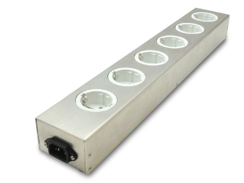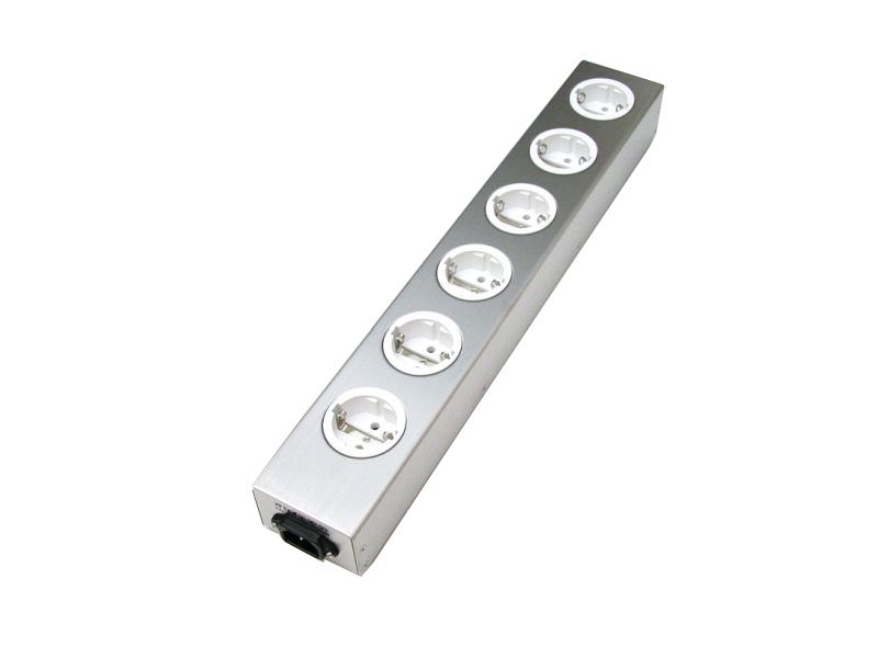 Сетевой фильтр-распределитель Oyaide MTS-6e оснащен шестью розетками европейского стандарта с двойными пружинными контактами, обеспечивающими плотную и надёжную фиксацию штепселя практически в любых условиях эксплуатации. Контакты в розетках выполнены из деоксидированной фосфорной бронзы, тщательно отполированы и покрыты слоем золота (1,5 мкм) и палладия (0,3 мкм). Разводка внутри фильтра произведена медным кабелем высокой степени очистки (99.99%), покрытым изоляцией из полиолефина.