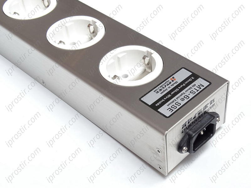 Сетевой фильтр-распределитель Oyaide MTS-6e SSE (Silver Special Edition) оснащен шестью розетками европейского стандарта с двойными пружинными контактами, обеспечивающими плотную и надёжную фиксацию штепселя практически в любых условиях эксплуатации. Контакты в розетках выполнены из деоксидированной фосфорной бронзы, тщательно отполированы и покрыты слоем золота (1,5 мкм) и палладия (0,3 мкм). Разводка внутри фильтра произведена серебряным кабелем высокой степени очистки (99.99%) сечением 2,0 мм².