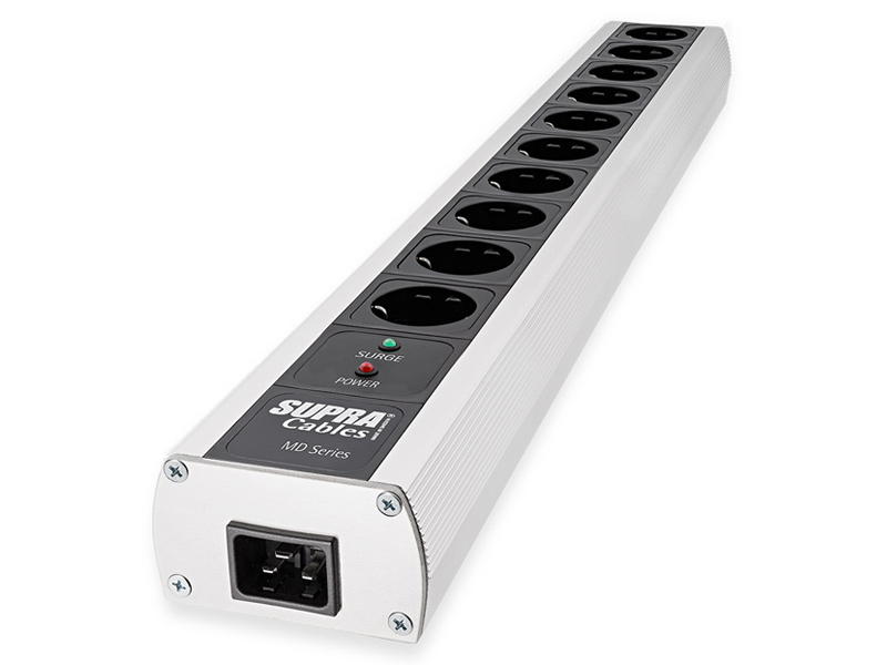 Сетевой фильтр-распределитель Supra MAINS BLOCK MD10-16 EU/SP оснащен десятью европейскими розетками (2 розетки без фильтров, 8 розеток с NIF-фильтром, все розетки SP защищены) и рассчитан на суммарный ток нагрузки до 16А. Фильтр выполнен в надежном алюминиевом корпусе с винтовым креплением панелей и подходит как для напольного, так и настенного размещения.