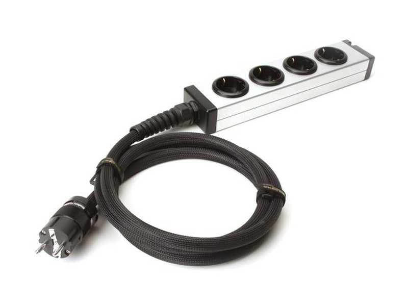 Hi-End дистрибьютор TTAF Power Bar 4 Silver Line с четырьмя качественными розетками в алюминиевом корпусе с медными контактными группами. TTAF Silver Line комплектуется сетевым кабелем TTAF 93268 сечением 3х2,5 мм² длиной 2,0 метра, заведенным непосредственно в корпус дистрибьютора без аппаратного разъема, и сетевым карбоновым коннектором TTAF 93124 с родиевым покрытием.