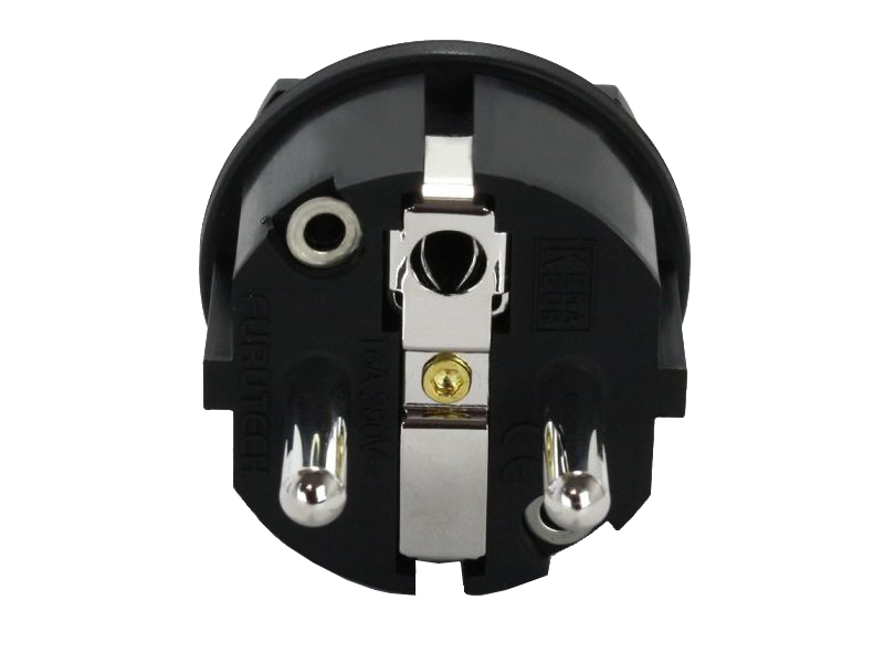 Сетевой коннектор Schuko с контактами, покрытыми родием. Диаметр кабеля: до 20,0 мм