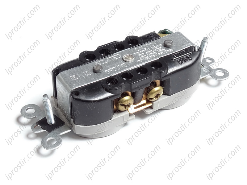 Двойная сетевая 15-амперная двухполюсная розетка с заземлением Leviton 5262-IGG американского стандарта применяется для подключения аудиоаппаратуры, американской или японской техники и электроинструментов, также используется для зарядки электроавтомобилей и т.п. Корпус розетки выполнен из термопластика. Проводник фиксируется посредством винтового зажима, благодаря чему обеспечивается максимально плотный контакт.