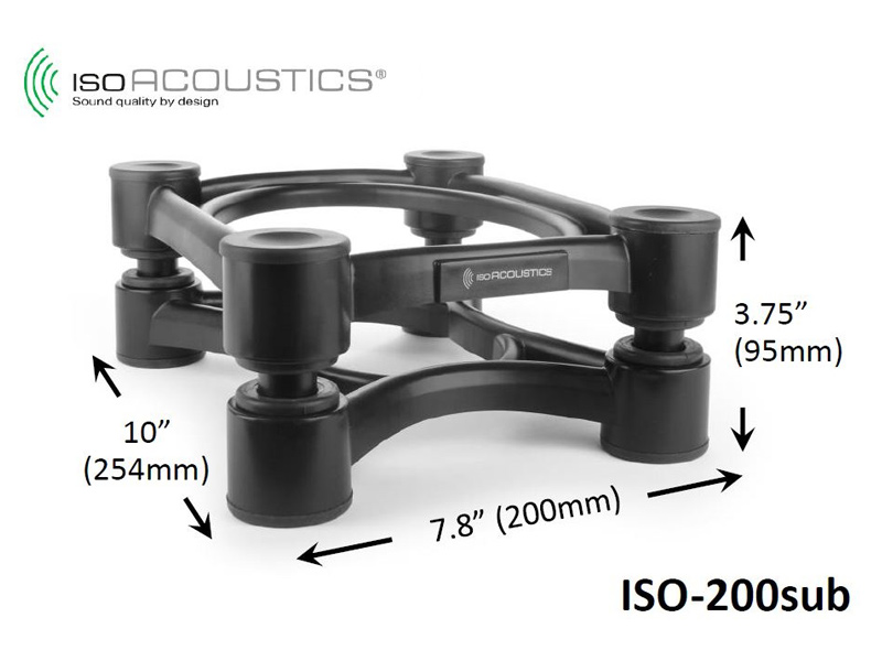 ISO-200Sub с фиксированной высотой и наклоном предназначен для размещения большинства сабвуферов и может использоваться как отдельный блок или в сочетании с дополнительными устройствами для больших сабвуферов.