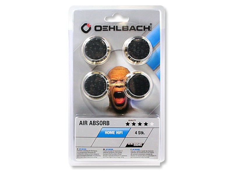 Oehlbach Air Absorb Gold — эффективные цельнометаллические демпферы, имеют резиновую контактную поверхность и надежно предотвращают передачу нежелательных резонансов от корпусов громкоговорителей к поверхностям, на которых они установлены с помощью специально разработанной системы воздушного демпфирования.