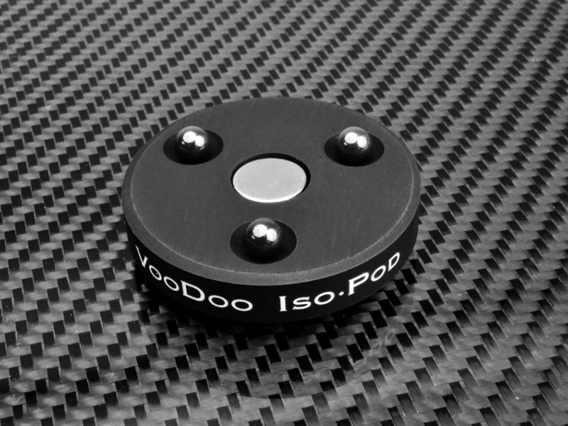Система виброразвязки Iso-Pod System американской компании VooDoo Cable представляет собой высокоэффективное решение для снижения вибраций и резонансов и, следовательно, улучшения качества звучания акустической системы. Опоры выполнены из авиационного сплава и располагаются на подшипниках из циркония и керамики, которые преобразовывают вибрации в тепло. Они минимизируют собственные резонансы устройства, а также изолируют его от вибраций стойки, пола и других поверхностей. Наряду с этим, виброизоляционные шайбы Iso-Pod System обеспечивают высокую устойчивость компонентов АС, предотвращая их скольжение.