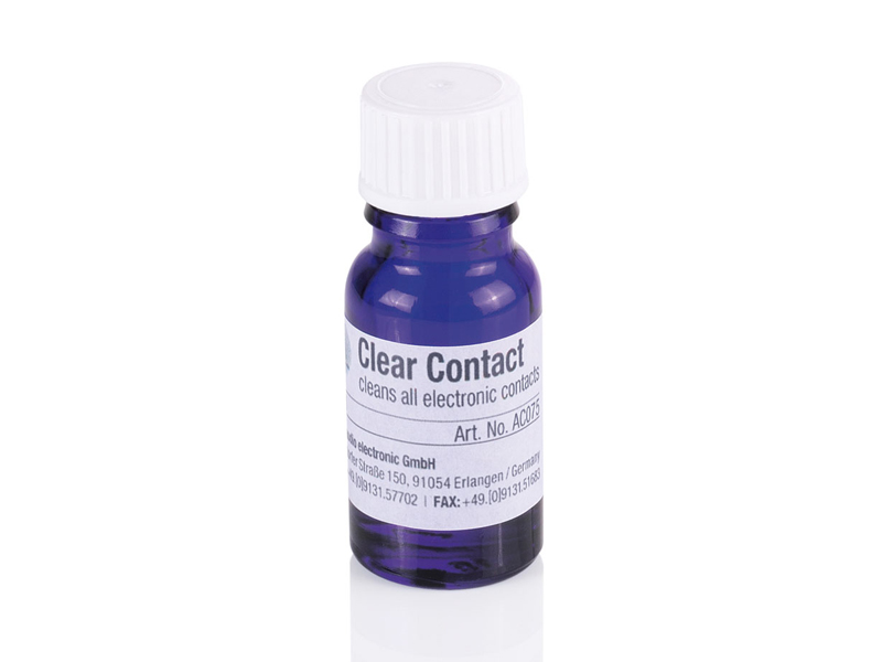 Раствор Clear Contact является высокоэффективным средством, разработанным компанией Clearaudio (Германия) для очистки и улучшения проводимости в электрических контактах аудио- и видеоустройств, компьютерного оборудования. Представляет собой смесь специально подобранных растворителей, которая эффективно удаляет жиры, грязь, масла и другие загрязнения с контактных поверхностей. Средство быстро испаряется и высыхает, не оставляя следов. Применение жидкости Clear Contact позволяет продлить срок службы аудио- и видеооборудования, оптимизировать передачу сигнала, улучшить качество передаваемого звука и изображения.