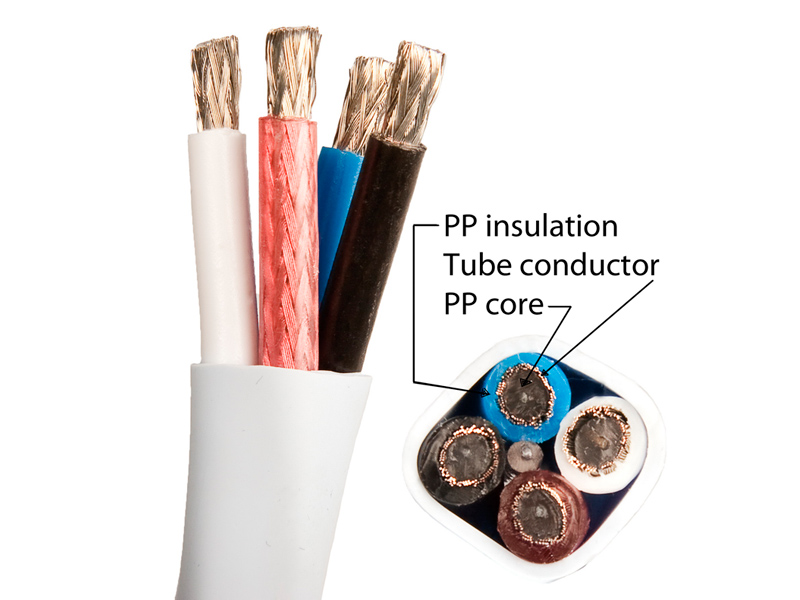 SUPRA Quadrax — это кабель с четырьмя изолированными проводниками, который может быть сконфигурирован тремя различными способами: Mono-wiring, Bi-wiring и Bi-amping. Каждый из четырех проводников выглядит, как коаксиальный кабель, но без центральной проводящей жилы. Проводником служит сам экран из луженой меди, которую SUPRA использует во многих своих известных кабелях. Внутри экрана находится полипропиленовый цилиндр. От внешних воздействий экран защищен наружным слоем цветной полипропиленовой изоляции. Таким образом, кабель состоит из таких четырех, слегка перекрученных для защиты от наводок, проводников, которые в свою очередь заключены в общую полипропиленовую изоляцию фирменного цвета SUPRA — Ice Blue.