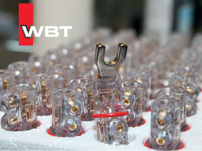 Хотя аудио и видео компоненты с развитием новых технологий с каждым годом стремительно меняются и бурно развиваются, длительное время в технологии соединений ничто не менялось. Продукция немецкой компании WBT восполняет этот качественный разрыв. Для многих известных во всем мире производителей аудиотехники аксессуары WBT сегодня являются де-факто стандартом качества и активно применяются в высококачественных изделиях этих компаний. Разъемы WBT были первыми, в которых начали использовать цанговый зажим. Это позволило достичь правильного давления в контакте, который обеспечивает более точные характеристики перехода и только в этом случае можно было гарантировать высочайшее качество звука.