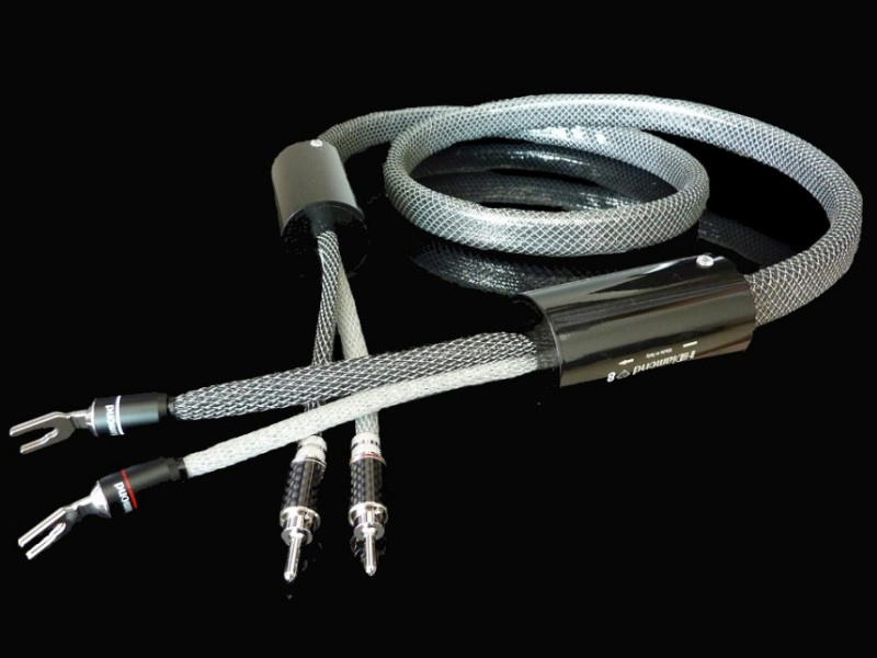 Референсный кабель с великолепной открытой сценой, нейтральностью и стабильностью звучания. Проводники изготовлены по фирменной технологии 4VRC (4 Vote Rame Cotto — четырежды пропечённая медь) и прошли четыре стадии обработки. Каждая из них предусматривает нагрев до определённой температуры и удаление различных видов примесей. На последней стадии также формируется необходимая кристаллическая структура и ориентация доменов. Производитель заявляет, что чистота меди, приготовленной таким образом, приближается к 100%. В модели Speaker Diamond 8 используется медь с добавлением графита, снижающего тепловые шумы в проводнике. Сами жилы переплетены таким образом, чтобы излучаемые ими электромагнитные поля взаимно компенсировались.