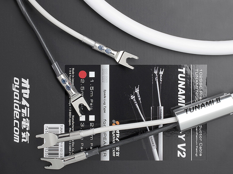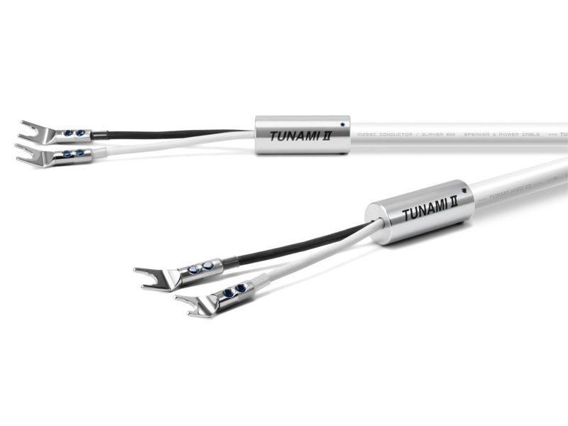 Акустический кабель Tunami II SP-Y V2 производства японской компании Oyaide, выполненный на основе известного универсального кабеля Tunami Nigo V2 классической двужильной конструкции. Каждая жила содержит 69 проводников из меди, изготовленной по уникальной технологии 102 SSC, позволяющей достичь максимального уровня проводимости. Кроме того, при скручивании проводников применяются жилы разных диаметров и особая схема завивки, чтобы уменьшить межпроводниковые зазоры и довести кабель по плотности сечения к медной моножиле. Применение в акустическом кабеле заземляющего проводника обеспечивает улучшенное соотношение сигнал-шум, что положительным образом сказывается на звуке. Тройная система экранирования, включающая запатентованный компанией Oyaide материал EMI, углеродные волокна и медную фольгу, позволяет практически полностью исключить искажения, вызванные электромагнитными, СВЧ помехами и внешними наводками. Для подавления вибраций, исходящих извне, применены алюминиевые втулки, надетые на внешнюю оболочку кабеля.