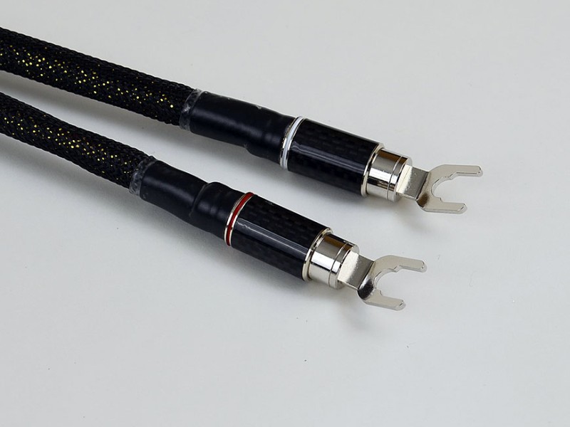 Кабель разработан и произведён вручную в США, может комплектоваться лопатками или бананами с контактами из теллуровой меди с двухслойным серебряно-родиевым покрытием и корпусом со вставкой из карбонового волокна.
