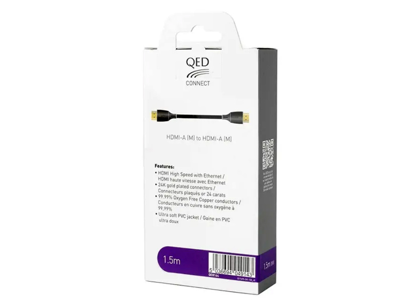 HDMI-кабель QED Connect предназначен для подключения AV-устройств, таких как проигрыватели Blu-ray, цифровые приставки, игровые консоли и AV-ресиверы, к телевизору (до 4K) или AV-ресиверу. Его спецификации HDMI 2.0 обеспечивают передачу данных в разрешении 4K со скоростью до 18 Гбит/с.