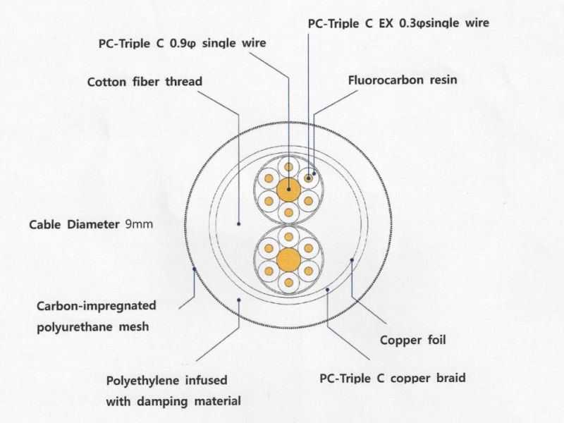 • Экранирование: оплетка из меди PC-Triple C и медная фольга