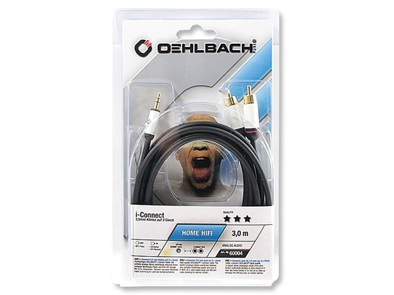 Oehlbach i-Connect — кабель-переходник с разъёмом mini-jack 3.5 mm на одном конце кабеля и двумя разъёмами RCA на другом. В качестве материала проводников используется очищенная бескислородная медь OFC. Внешняя оболочка кабеля обладает высокой гибкостью, прочностью и защищает проводники от механических повреждений и воздействия окружающей среды. Цельнометаллические разъемы, покрытые 24К позолотой, обеспечивают надёжный контакт и длительный срок эксплуатации.