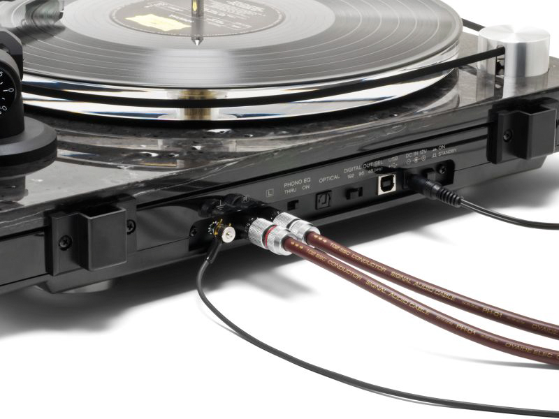 Кабель разделан разъёмами RCA из латуни с 24К позолоченным покрытием. Провод заземления оборудован позолоченными лопатками с внутренним расстоянием между зубцами 5,0 мм, что позволяет подключать его к разными клеммам фонокорректоров и виниловых проигрывателей. Поставляется в фирменной коробке Oyaide.