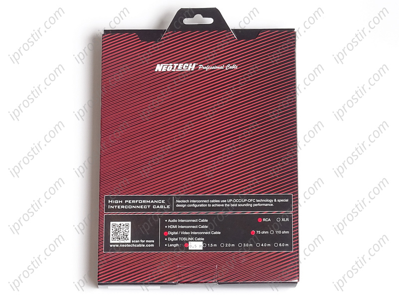 Кабель комплектуется RCA разъёмами Neotech с 24К позолоченным покрытием. Кабель поставляется в фирменной картонной коробке.