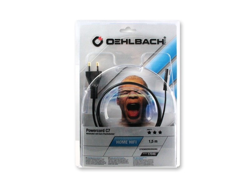 В силовом (сетевом) кабеле Oehlbach Powercord С7 в качестве материала проводников используется бескислородная медь высокой степени очистки OFC. Внешняя изоляция чёрного цвета, гибкая и достаточно прочная, чтобы защитить проводники от внешних воздействий.