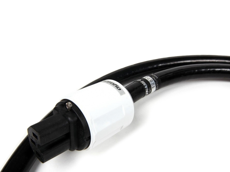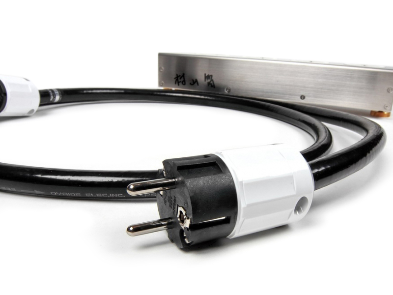 Кабель разделан в заводских условиях фирменными коннекторами европейского стандарта Oyaide P-004e и C-004 в специальном исполнении с корпусами из белого пластика. Контакты разъёмов производятся из бериллиевой меди, такой материал обладает высокой электропроводностью, износостойкостью и твердостью, отлично обрабатывается и не теряет первоначальной формы в течение долгого срока использования. Покрытие контактов выполнено из платины и палладия.