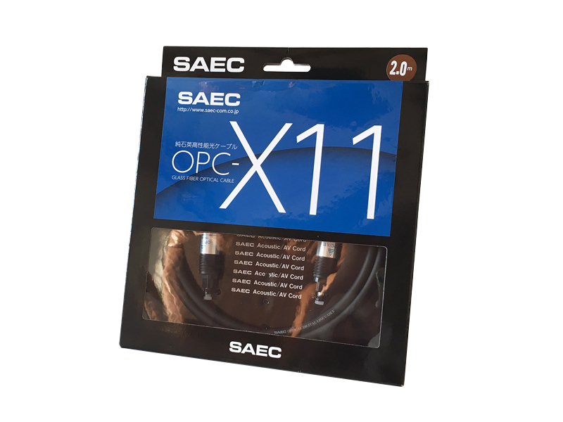 SAEC OPC-X11 — флагманский оптоволоконный кабель с разъемами Toslink японского бренда SAEC, гарантирующий абсолютную передачу сигнала и чистое, неискаженное воспроизведение звука. Кабель создан из кварцевых волокон с использованием высокотехнологичного оборудования, контроля показателей преломления и точных методов обработки, благодаря чему обеспечивается максимально точная передача сигнала с минимальными потерями. Сердцевина волокна идеально отполирована, что приводит к большей светопроводности и значительному снижению уровня джиттера. Гибкая металлическая трубка обеспечивает надёжную защиту проводника от внешних воздействий и служит для подавления вибраций. Кабель чёрного цвета с внешним диаметром 5,5 мм.