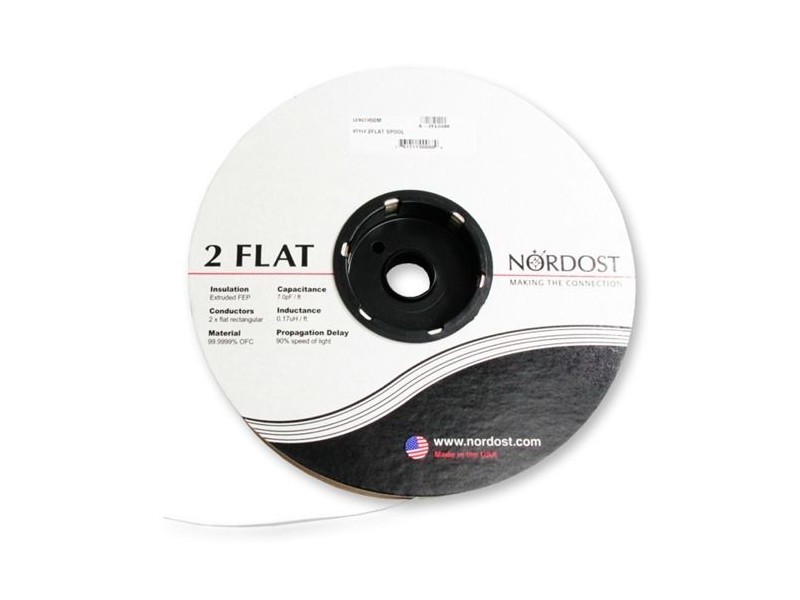 Акустический кабель Nordost 2 Flat серии Leifstyle имеет ультраплоскую конструкцию, обладает повышенной прочностью и гибкостью, что обеспечивает его удобную прокладку в стенах (без их штробления) или под напольными покрытиями. Nordost 2 Flat состоит из двух моножильных проводников сечением 0,823 мм², выполненных из бескислородной меди высочайшей степени очистки OFC 99.9999% и помещенных в тефлоновую FEP оболочку. Благодаря плоской конструкции кабель обладает очень низкой ёмкостью и индуктивностью и обеспечивает нейтральное звучание с точной передачей деталей.