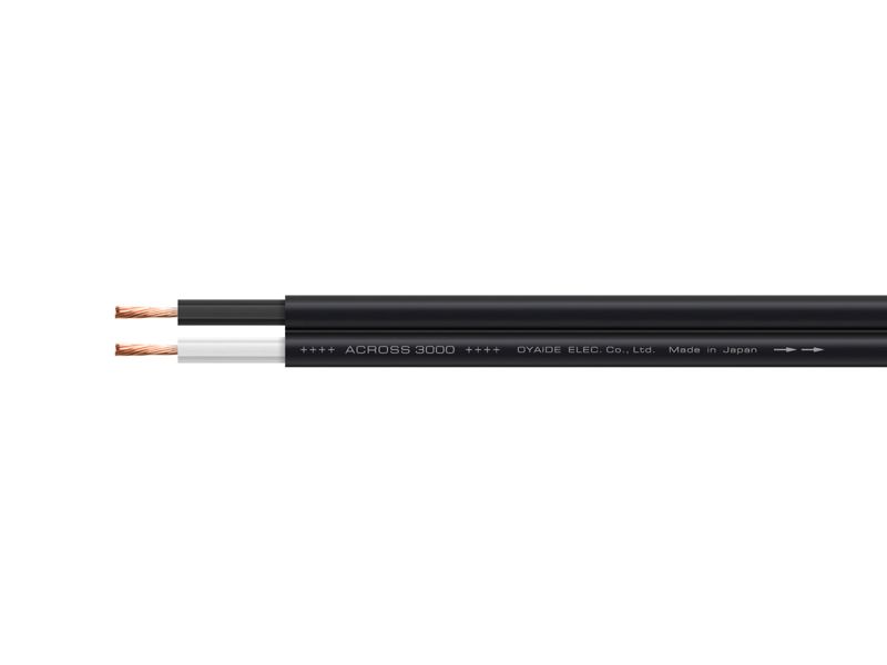 Oyaide Across 3000 — улучшенная версия очень популярного и продаваемого во всём мире акустического кабеля Across 2000. В кабеле используется два проводника, выполненные из инновационной меди 102 SSC и состоящие из 37 жил разного диаметра, скрученных по особой схеме (технология 3Е) для уменьшения межпроводниковых зазоров и достижения наиболее плотного контакта. Такая конструкция позволяет достичь максимальной проводимости с низким уровнем искажений сигнала и коэффициента затухания.