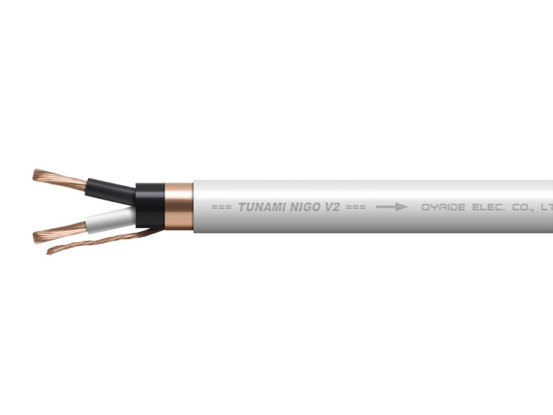 Универсальный кабель Tunami Nigo V2 японской компании Oyaide имеет классическую двужильную конструкцию и может использоваться в качестве силового или акустического кабеля. Каждая жила содержит 69 проводников из меди, изготовленной по уникальной технологии 102 SSC, позволяющей достичь максимального уровня проводимости. Кроме того, при скручивании проводников применяются жилы разных диаметров и особая схема завивки, чтобы уменьшить межпроводниковые зазоры и довести кабель по плотности сечения к медной моножиле. Тройная система экранирования, включающая запатентованный компанией Oyaide материал EMI, углеродные волокна и медную фольгу, позволяет практически полностью исключить искажения, вызванные электромагнитными, СВЧ помехами и внешними наводками.